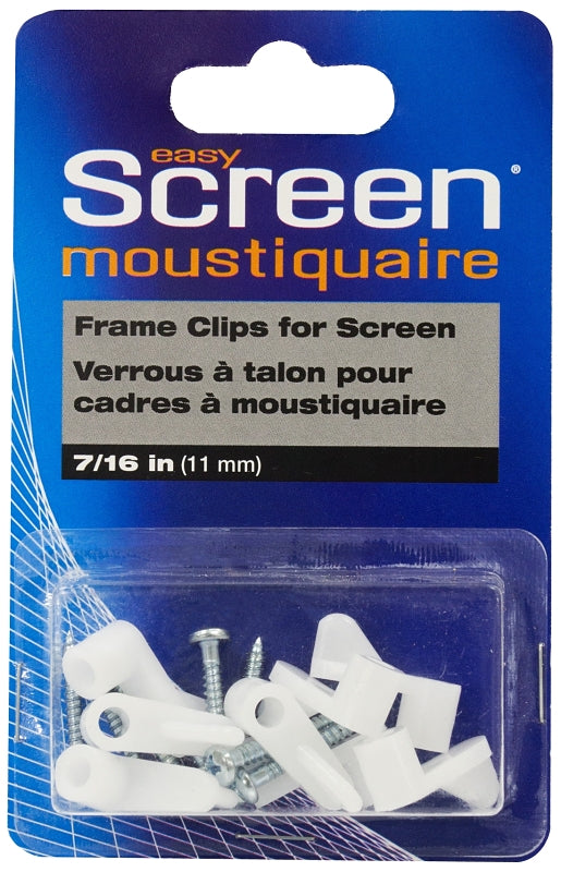 Eazy Screen Frame Clip, Plastic, White, Dimensions: 7/16 in Dia, Includes: (8) Frame Clips, Screws