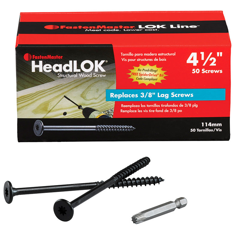 HeadLOK is a heavy duty wood screw that does it all with an internal drive and flat head. HeadLOK offers higher design shear than 3/8" lag screws and no predrilling is needed. Installs in a fraction of the time versus traditional bolts with fewer steps and less effort. The flat head installs flush saving additional time and money. Combined with the black coating on the fastener, HeadLOK provides a great finished look. Tested and supported by engineering data that conforms to the most current ICC standards. It is also approved for use in ACQ or treated lumber.