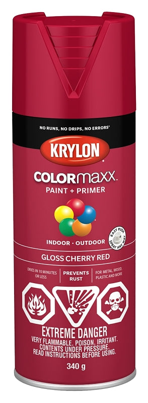 Krylon COLORmaxx K05511007 Spray Paint, Gloss, Cherry Red, 12 oz, Aerosol Can