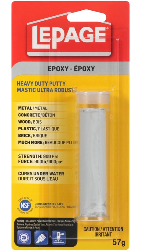 LePage Repair Express Epoxy Putty, 57 g Net Content, Cylinder Container, Solid Form, Sulphurous Odor/Scent, Blue, Compositions: Talc, Glass, Oxide, Chemicals, Epichlorohydrin-4,4'-Isopropylidene Diphenol Resin, Triethylenetetramine, Quartz (SiO2), Respirable, 2.25 Specific Gravity, >93.3 deg C Flash Point, <0.1 % VOC, 230 deg C Boiling Point