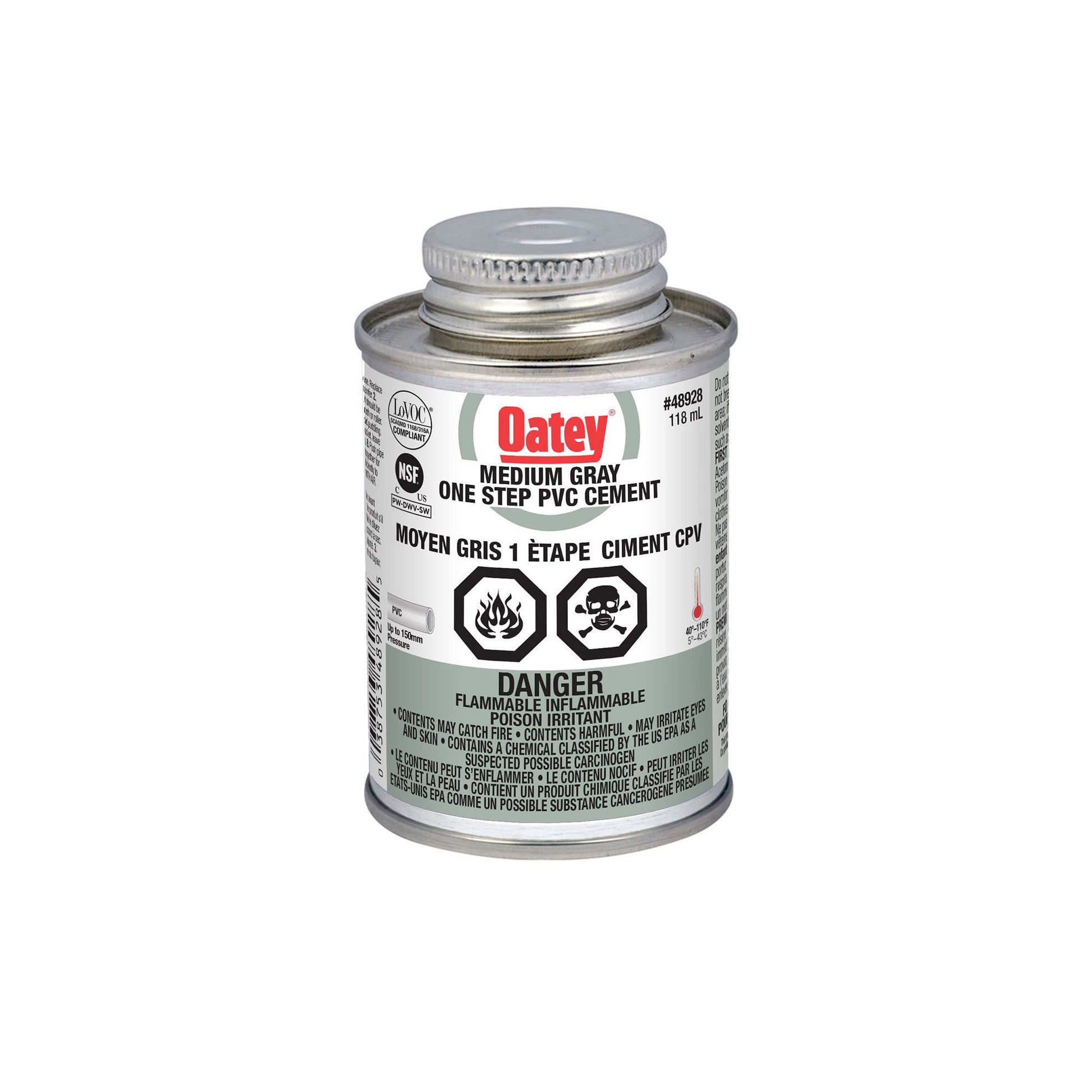Oatey 48928 PVC 1-Step Medium Gray Cement, 118mL