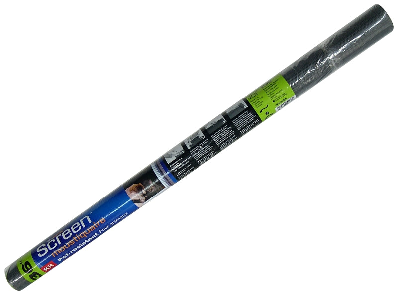 RCR Easy Screen Moustiquaire Pet Screen, Fiberglass, Black, 84 in L, 36 in W, Resists: Tearing, Includes: Installation Tool, Knife, Spline