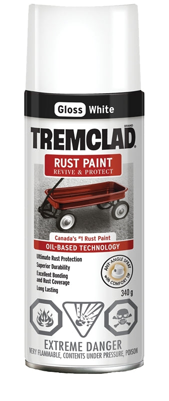 TREMCLAD oil-based rust paint spray offers excellent rust inhibition and is specially formulated to penetrate rust and bind to metal. Comfort spray tip with a wide finger pad prevents finger fatigue while providing excellent spray control. Any-angle spray feature even sprays upside down for hard to reach areas.