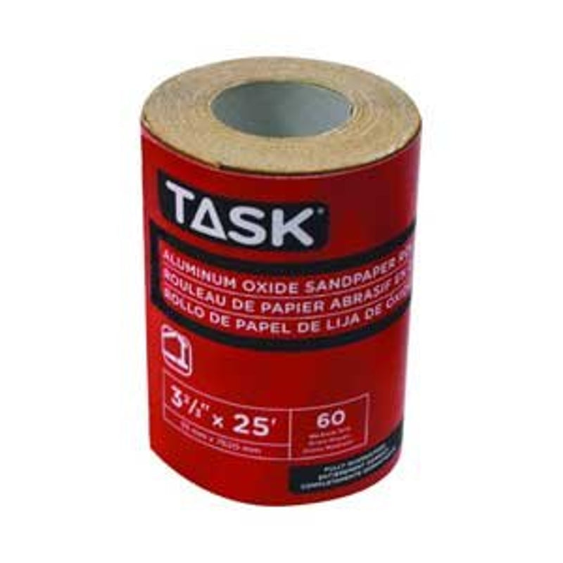 Task Sandpaper Roll, Aluminum Oxide Abrasive, 100 Grit, Grit Grade: Fine, 25 ft L, 3-2/3 in W, Applicable Materials: Fiberglass, Metal, Plastic, Wood