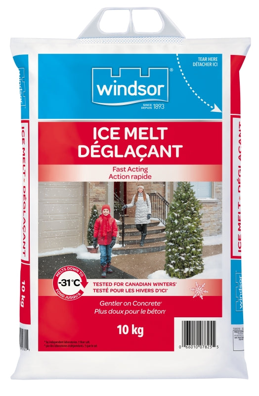 Windsor® ice melt blends calcium chloride and rock salt to melt ice and snow faster and longer than salt in extreme winter temperatures. It's blue crystals offer greater visibility which makes for easy application.